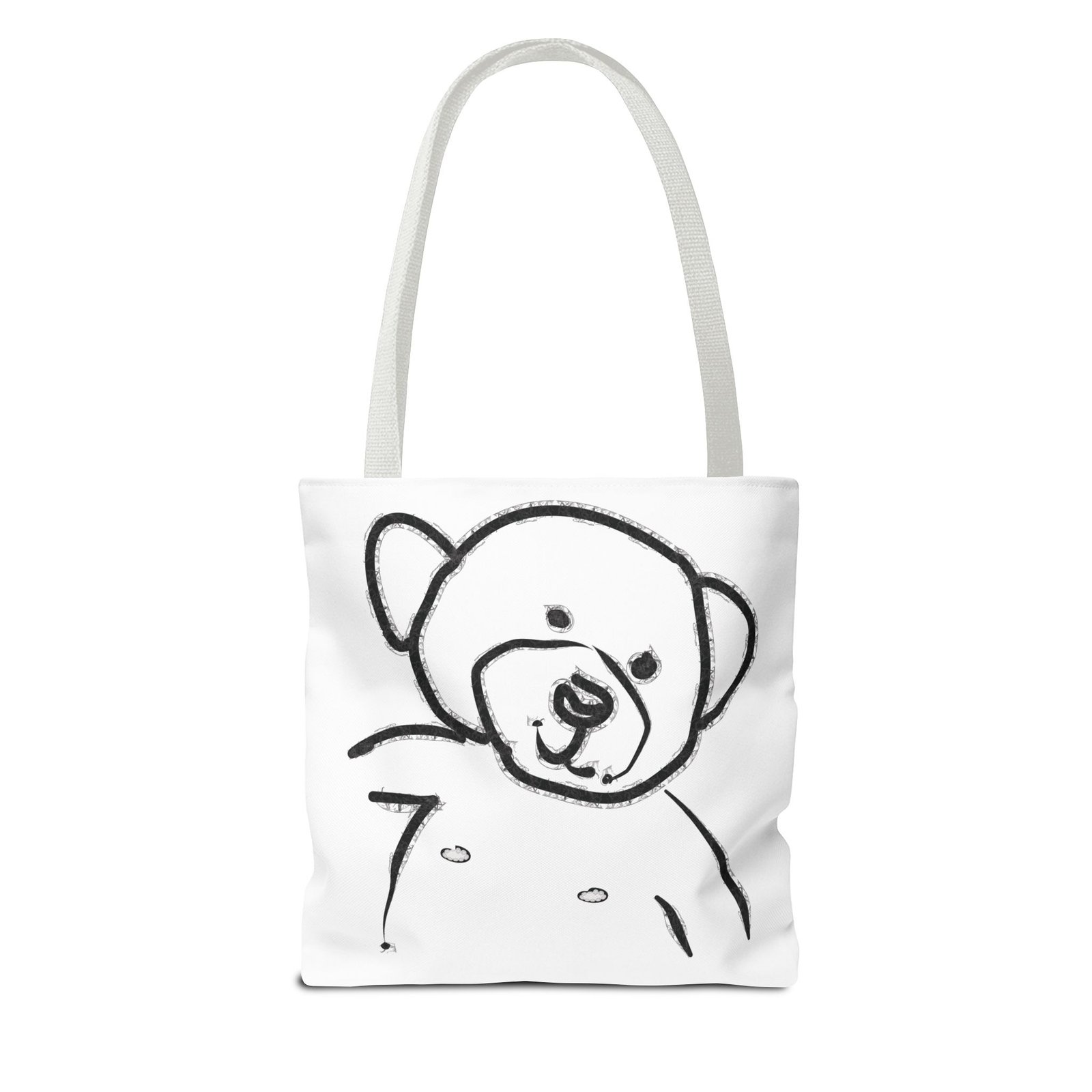 This Tote Bag is perfect for adding a touch of personality to your daily errands! With its playful design featuring a cute bear illustration, it brings a sense of whimsy and joy to any outing. The durable build and spacious interior make it an excellent choice for anyone, especially animal lovers and those who appreciate unique art. Ideal gift for lovers of teddys.